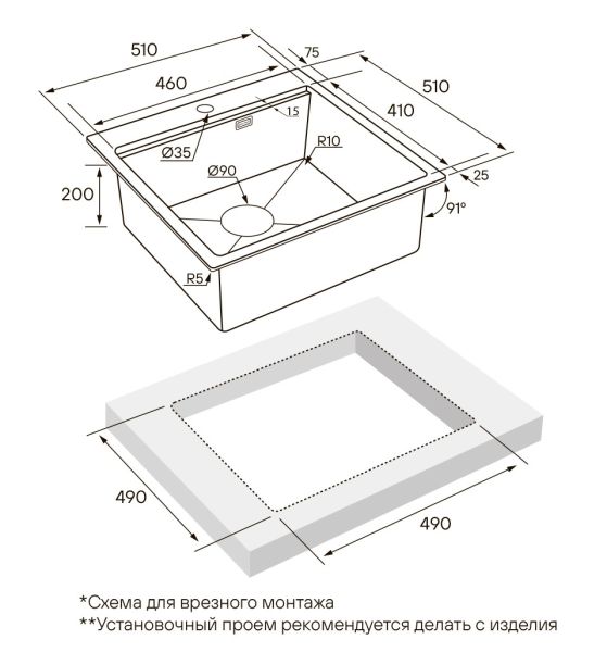 Прочный материал мойки позволяет избежать деформации от большого веса посуды и продуктов и обладает устойчивостью к термическим воздействиям. Мойка легка в уходе и чистке, а также имеет дополнительное отверстие для установки дозатора или кнопки для измельчителя, что помогает оборудовать рабочее пространство так, как вам удобно.