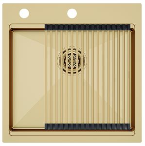 Комплект Paulmark: мойка Kroner-Pro 51 и ролл-мат Pro PM705151-BG+R405-BG брашированное золото