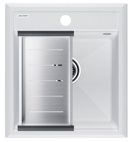 Комплект Paulmark: мойка Stepia 45 и коландер Advance PM114651-WH+A375-BS белый/брашированная нержавеющая сталь купить