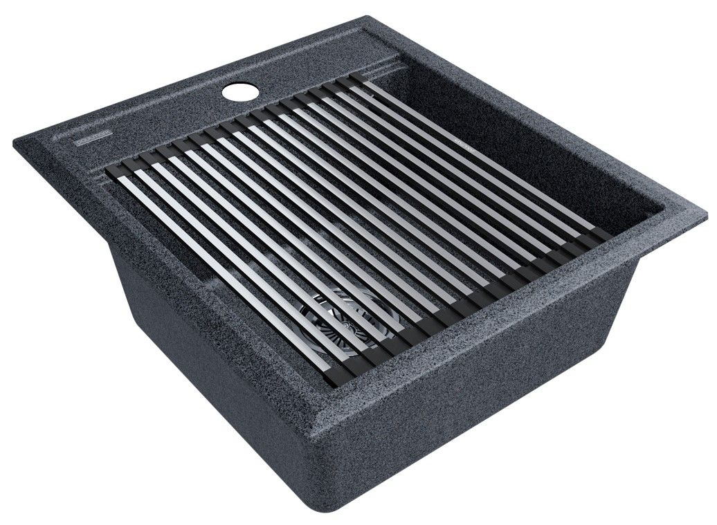 Комплект мойка STEPIA 45 + ролл-мат STEP, PM114651-DG+R375-BSСтильный и многофункциональный комплект мойки из композитного материала на основе гранита и ролл-мата из высококачественной нержавеющей стали для создания комфортной рабочей зоны на вашей кухне.Мойка STEPIA 45 изготовлена из IT-GRANIT – композитного материала на основе гранита, благодаря чему мойка не потеряет свой первоначальный цвет за многие годы использования даже при длительном воздействии солнечных лучей. Материал мойки устойчив к сколам, царапинам и деформациям. На горизонтальных гранях чаши мойки предусмотрены специальные выступы-ступеньки, которые позволяют использовать такие аксессуары, как ролл-маты, доски, коландеры и пр. для создания дополнительной рабочей поверхности на кухне. Дно чаши мойки имеет 4 грани, направленных к сливу под индивидуальным градусом для максимально быстрого ухода воды.