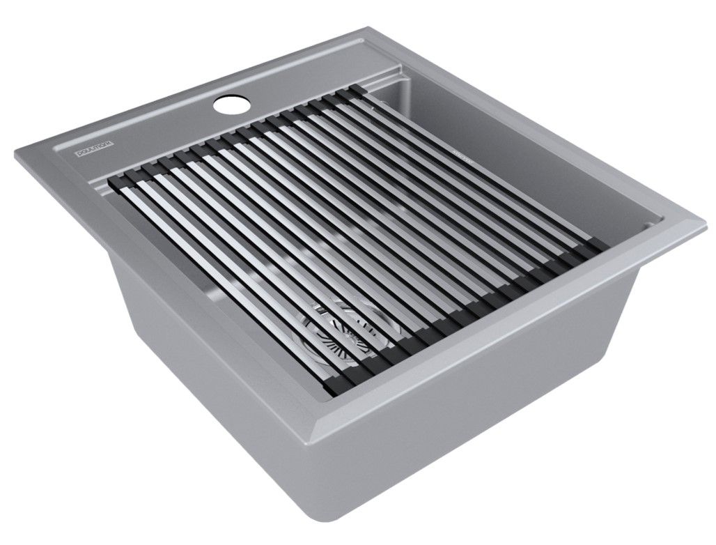 Комплект мойка STEPIA 45 + ролл-мат STEP, PM114651-GRM+R375-BSСтильный и многофункциональный комплект мойки из композитного материала на основе гранита и ролл-мата из высококачественной нержавеющей стали для создания комфортной рабочей зоны на вашей кухне.Мойка STEPIA 45 изготовлена из IT-GRANIT – композитного материала на основе гранита, благодаря чему мойка не потеряет свой первоначальный цвет за многие годы использования даже при длительном воздействии солнечных лучей. Материал мойки устойчив к сколам, царапинам и деформациям. На горизонтальных гранях чаши мойки предусмотрены специальные выступы-ступеньки, которые позволяют использовать такие аксессуары, как ролл-маты, доски, коландеры и пр. для создания дополнительной рабочей поверхности на кухне. Дно чаши мойки имеет 4 грани, направленных к сливу под индивидуальным градусом для максимально быстрого ухода воды.