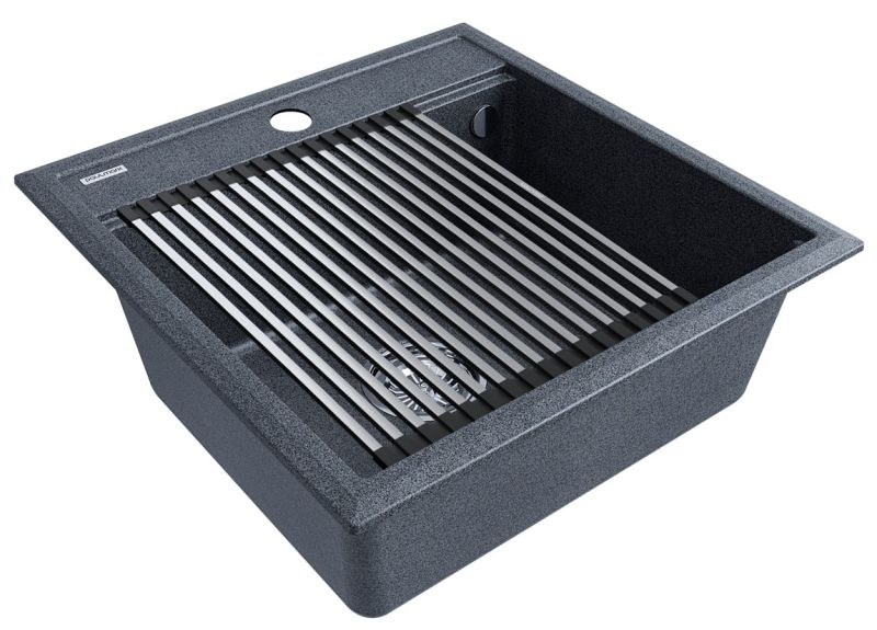 Комплект мойка STEPIA 50 + ролл-мат STEP, PM115051-DG+R375-BSСтильный и многофункциональный комплект мойки из композитного материала на основе гранита и ролл-мата из высококачественной нержавеющей стали для создания комфортной рабочей зоны на вашей кухне.Мойка STEPIA 50 изготовлена из IT-GRANIT – композитного материала на основе гранита, благодаря чему мойка не потеряет свой первоначальный цвет за многие годы использования даже при длительном воздействии солнечных лучей. Материал мойки устойчив к сколам, царапинам и деформациям. На горизонтальных гранях чаши мойки предусмотрены специальные выступы-ступеньки, которые позволяют использовать такие аксессуары, как ролл-маты, доски, коландеры и пр. для создания дополнительной рабочей поверхности на кухне. Дно чаши мойки имеет 4 грани, направленных к сливу под индивидуальным градусом для максимально быстрого ухода воды.