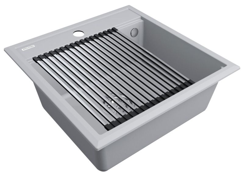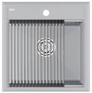 Комплект мойка STEPIA 50 + ролл-мат STEP, PM115051-GRS+R375-BSСтильный и многофункциональный комплект мойки из композитного материала на основе гранита и ролл-мата из высококачественной нержавеющей стали для создания комфортной рабочей зоны на вашей кухне.Мойка STEPIA 50 изготовлена из IT-GRANIT – композитного материала на основе гранита, благодаря чему мойка не потеряет свой первоначальный цвет за многие годы использования даже при длительном воздействии солнечных лучей. Материал мойки устойчив к сколам, царапинам и деформациям. На горизонтальных гранях чаши мойки предусмотрены специальные выступы-ступеньки, которые позволяют использовать такие аксессуары, как ролл-маты, доски, коландеры и пр. для создания дополнительной рабочей поверхности на кухне. Дно чаши мойки имеет 4 грани, направленных к сливу под индивидуальным градусом для максимально быстрого ухода воды.