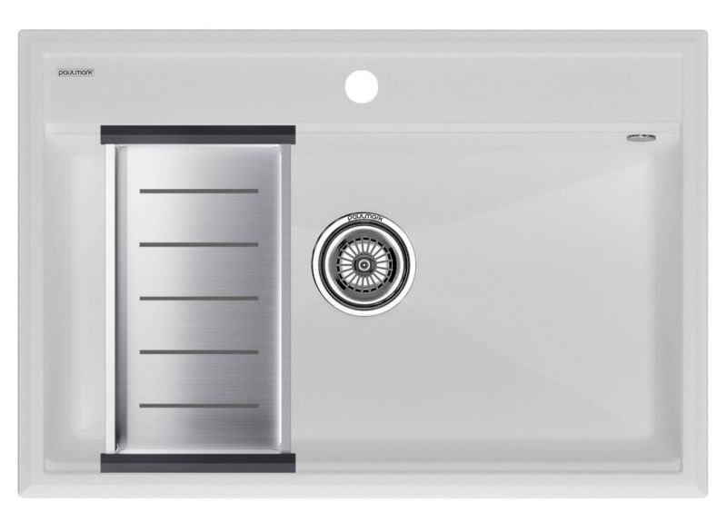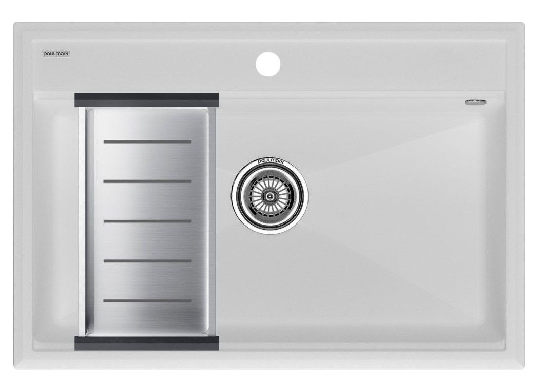 Комплект Paulmark: мойка Stepia 80 и коландер Advance PM117551-WH+A375-BS белый/брашированная нержавеющая сталь купить