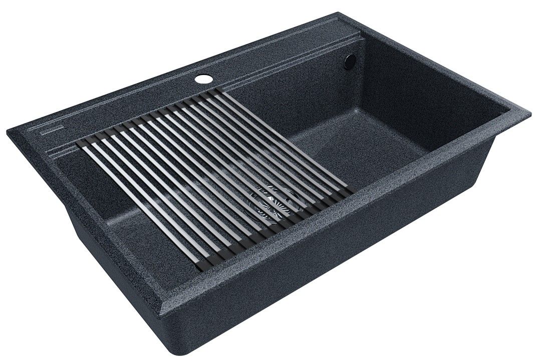 Комплект мойка STEPIA 80 + ролл-мат STEP, PM117551-DG+R375-BSСтильный и многофункциональный комплект мойки из композитного материала на основе гранита и ролл-мата из высококачественной нержавеющей стали для создания комфортной рабочей зоны на вашей кухне.Мойка STEPIA 80 изготовлена из IT-GRANIT – композитного материала на основе гранита, благодаря чему мойка не потеряет свой первоначальный цвет за многие годы использования даже при длительном воздействии солнечных лучей. Материал мойки устойчив к сколам, царапинам и деформациям. На горизонтальных гранях чаши мойки предусмотрены специальные выступы-ступеньки, которые позволяют использовать такие аксессуары, как ролл-маты, доски, коландеры и пр. для создания дополнительной рабочей поверхности на кухне. Дно чаши мойки имеет 4 грани, направленных к сливу под индивидуальным градусом для максимально быстрого ухода воды.