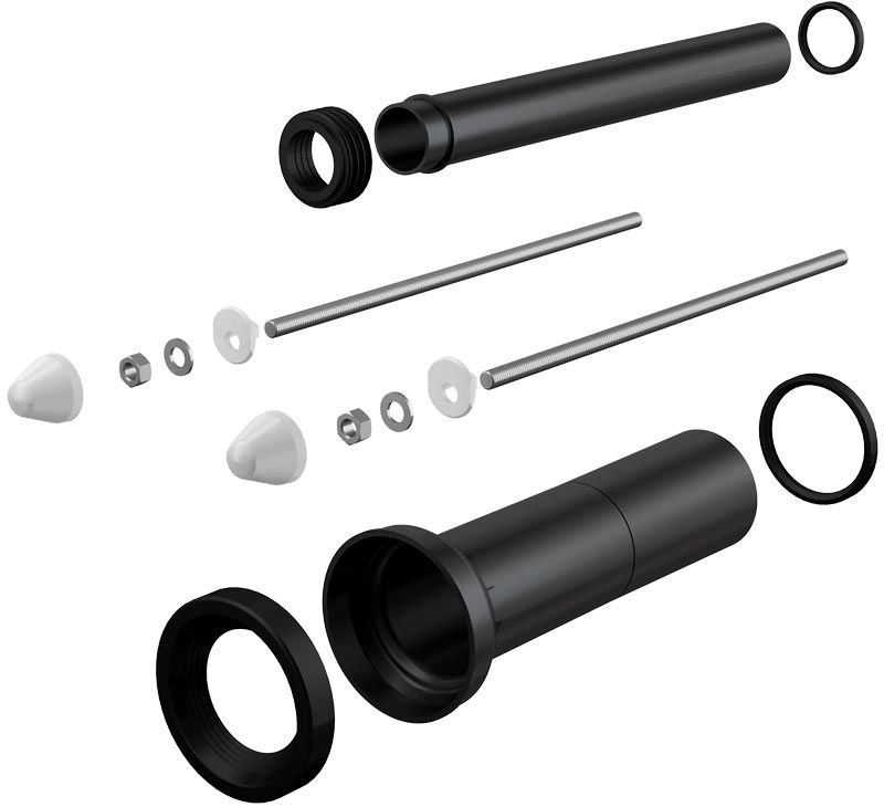 - Для подключения воды и канализации к подвесному унитазу – удлиненный набор
