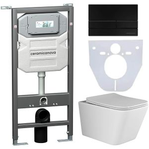 Комплект с инсталляцией Ceramica Nova CN3007_1002B_1000 унитаз Metric CN3007 крышка-сиденье с микролифтом и инсталляция Envision CN1002B с чёрной матовой кнопкой смыва Flat