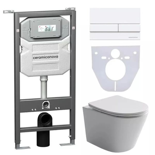 Комплект с инсталляцией Ceramica Nova CN6000_1002W_1000 унитаз Balearica CN6000 крышка-сиденье с микролифтом и инсталляция Envision CN1002W с белой матовой кнопкой смыва Flat