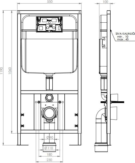 - Бачок скрытого монтажа с фронтальным механическим управлением.
