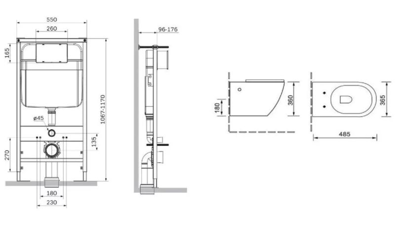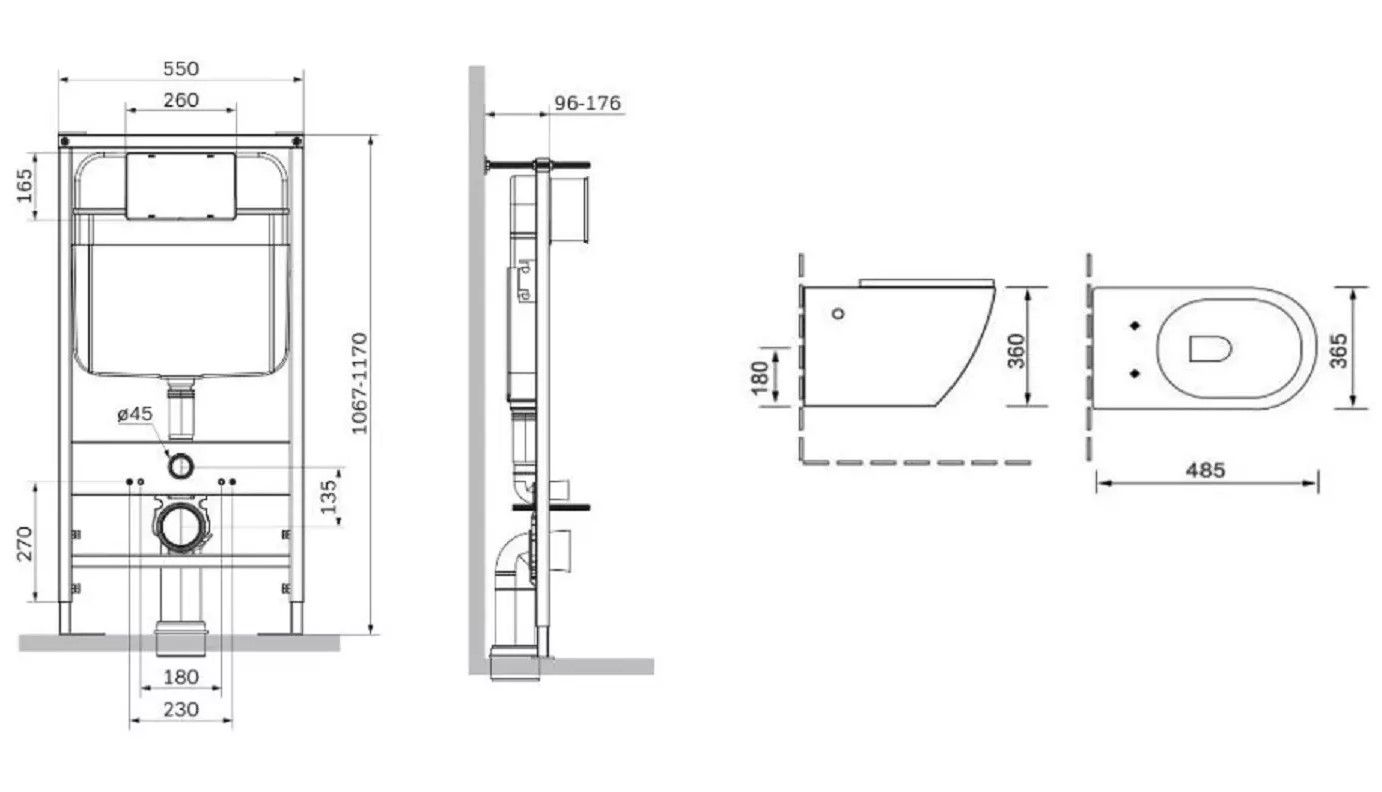 • SL-01 Инсталляция для подвесных унитазов с кнопкой смыва хром овальная.550*1067-1170*96-176