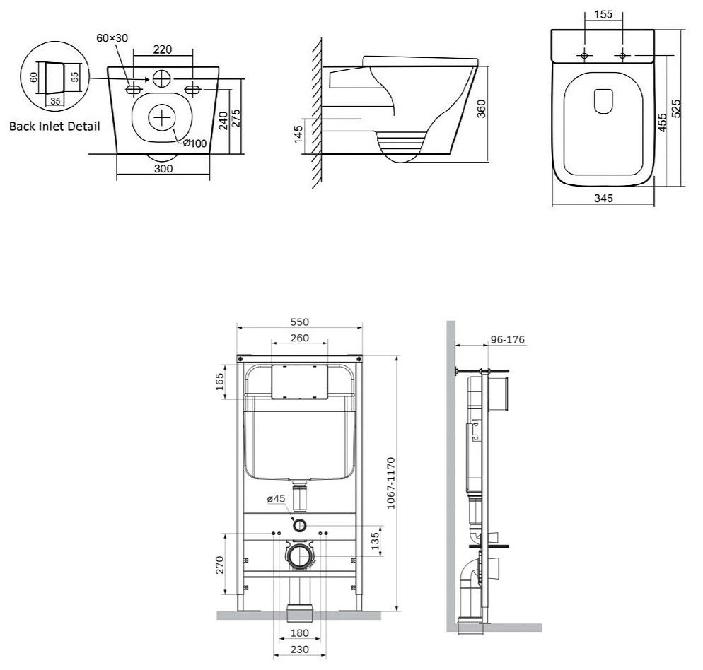 • Монтаж: встраиваемая перед стеной.