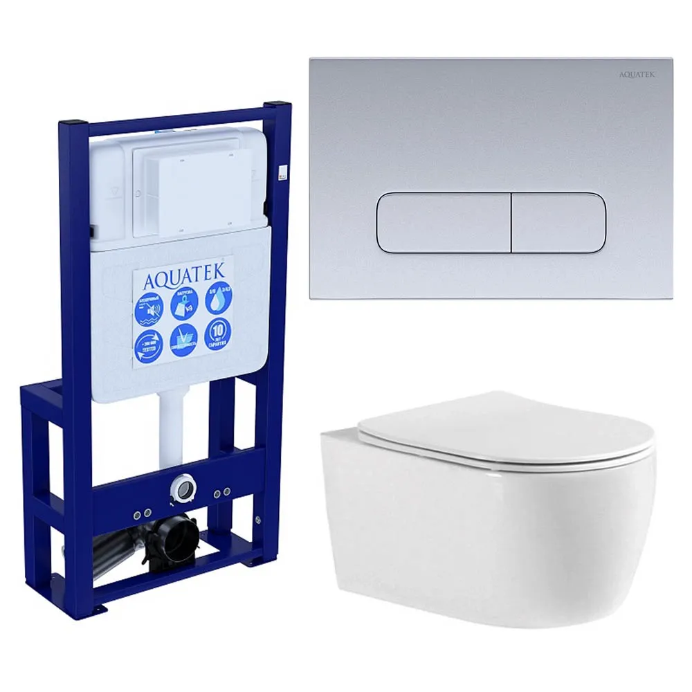 Комплект Set AQUATEK ЕВРОПА-014 3в1 унитаз с инсталляцией кнопкой и сиденьем микролифт