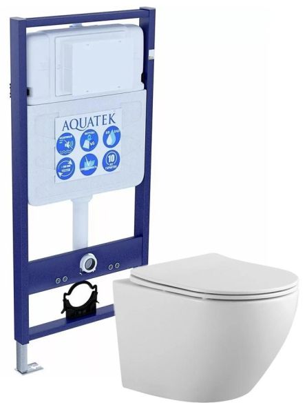 рама AQUATEK Standard INS-0000012 + звукоизоляционная прокладка + унитаз ЕВРОПА AQ1901-00 безободковый + тонкое сиденье с микролифтом