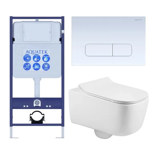 Комплект SET AQUATEK ЛУГАНО-013 4в1 унитаз с инсталляцией кнопкой и сиденьем микролифт купить