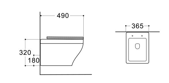 • Чаша унитаза безободковая 490*365*320