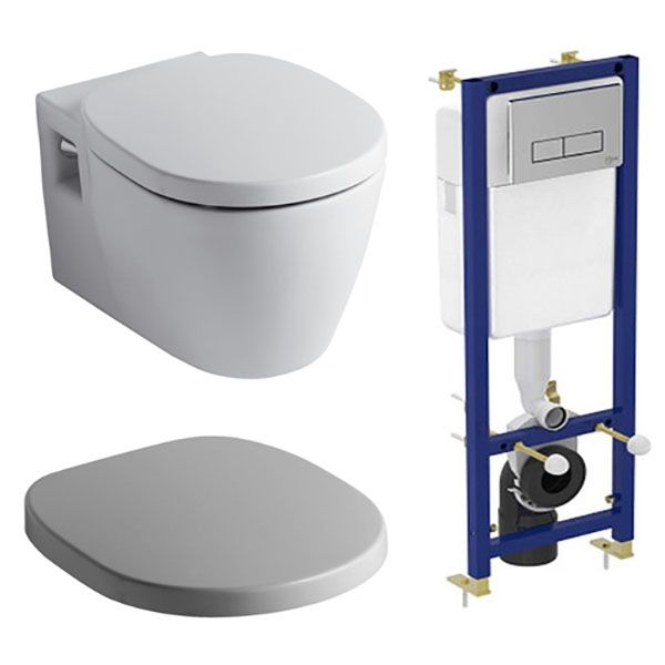 Комплект унитаза с инсталляцией Ideal Standard Connect W880101 с сиденьем Микролифт и клавишей смыва Хром купить