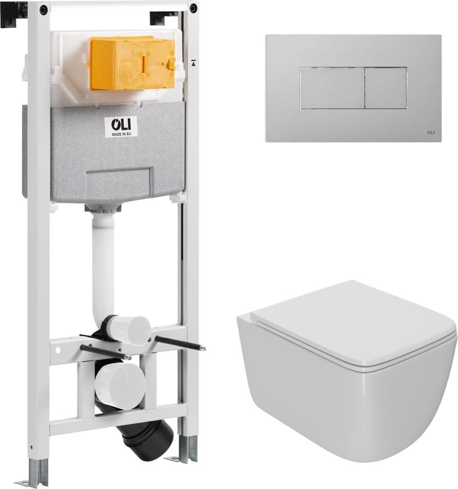 Инсталляция для унитаза. Рама инсталляции изготовлена из стали и покрыта прочной порошковой антикоррозионной краской. Отличительная особенность данной системы инсталляции - возможность регулировки по высоте на 20 см с помощью ножек из оцинкованной стали. Бачок скрытого монтажа выполнен из полимерного материала HDPE, что соответствует ведущим Европейским стандартам. Для защиты от конденсата, а также обеспечения бесшумной работы, резервуар скрытого монтажа обшит пенопластом.
