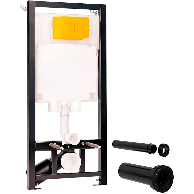 Инсталляция для унитаза. Рама инсталляции изготовлена из стали и покрыта прочной порошковой антикоррозионной краской. Отличительная особенность данной системы инсталляции - возможность регулировки по высоте на 20 см с помощью ножек из оцинкованной стали. Бачок скрытого монтажа выполнен из полимерного материала HDPE, что соответствует ведущим Европейским стандартам. Для защиты от конденсата, а также обеспечения бесшумной работы, резервуар скрытого монтажа обшит пенопластом.