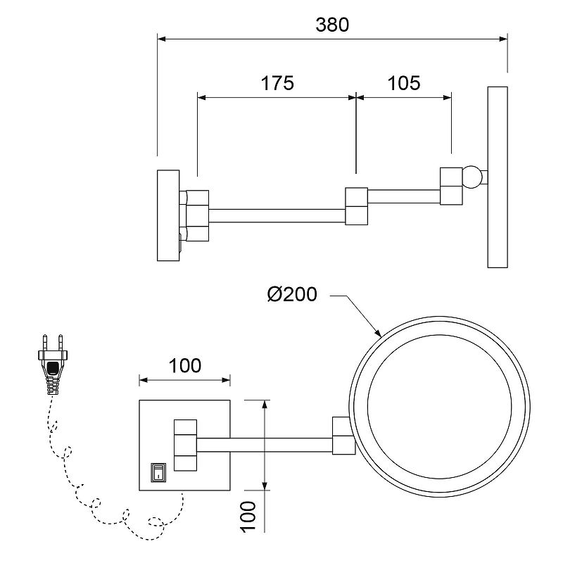 • Диаметр зеркала 200мм.