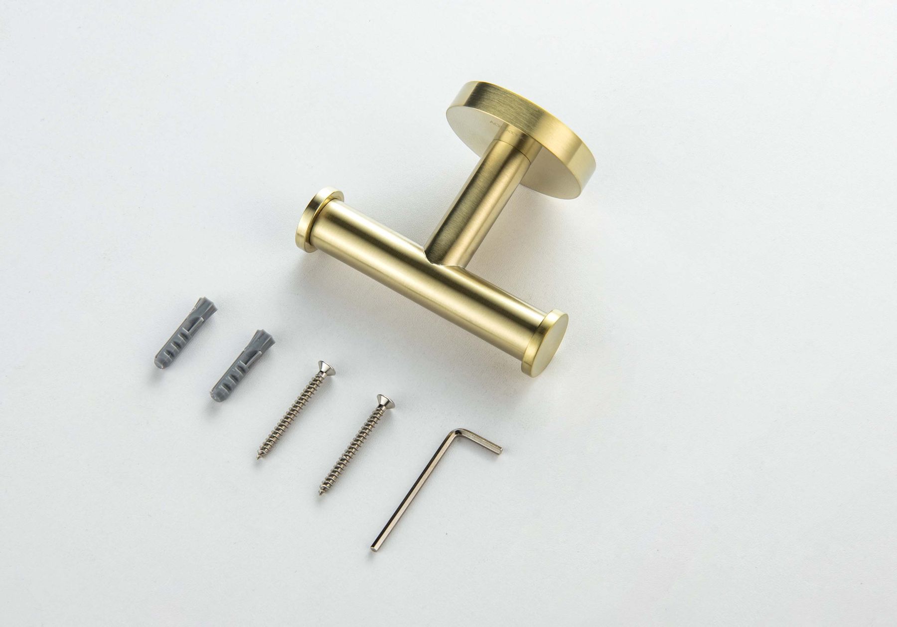 Общий размер (мм): 92*73*54Основной материал: латунь, нержавеющая стальМонтаж: на стенуМетод крепления: шурупыКоличество крючков: 2Назначение: аксессуарыТип продукта: крючок для полотенецГарантия (лет): 5Легкая установка