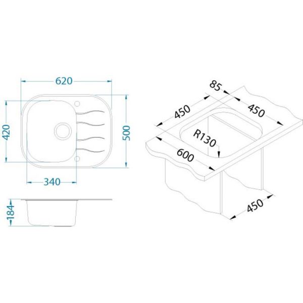Кухонная мойка Alveus 1123810 Wave 10 белая 62x50Мойка WAVE UP 10 белый 620X5001X, в компл.с сиф.1123351
