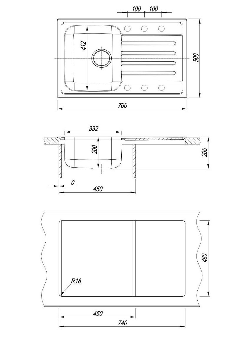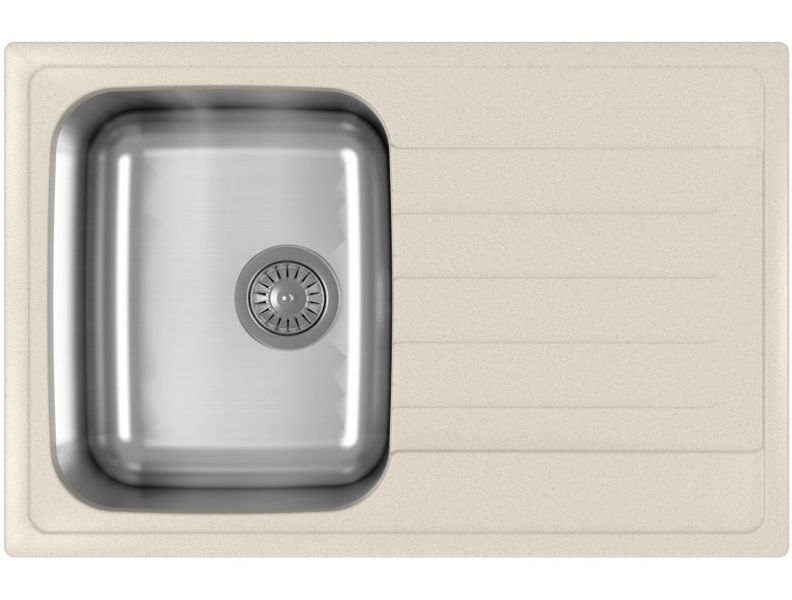 Материал чаши мойки - нержавеющая сталь марки AISI 304, толщина 0,8 ммРазмер чаши: 412x332x200. Материал: Литьевой мраморГабариты нетто (ДхШхВ ) 760х500х205 мм.