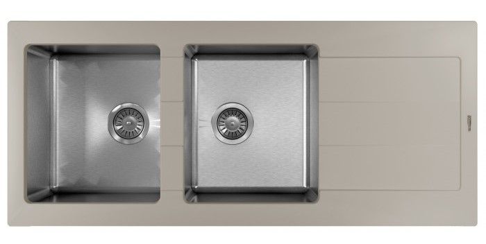 Врезная комбинированная мойка Florentina Комби 1160 сделана из искусственного камня и нержавеющей стали толщиной металла 1 мм.