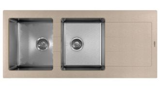 Врезная комбинированная мойка Florentina Комби 1160 сделана из искусственного камня и нержавеющей стали толщиной металла 1 мм.