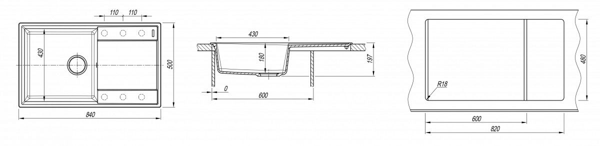 • Отверстия под смеситель: