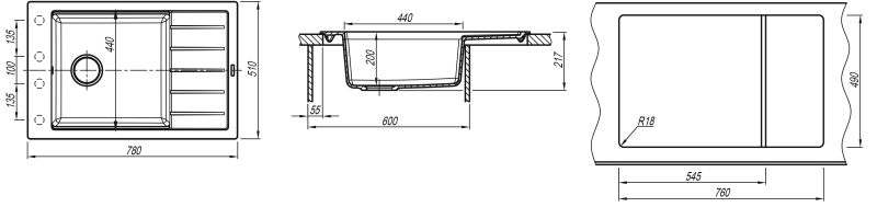 Кухонная мойка Florentina Липси 780 P антрацит