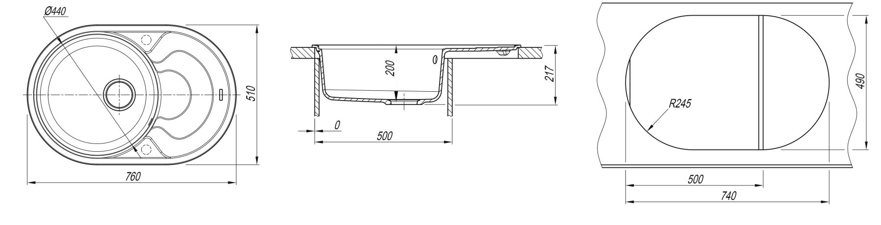 • Отверстия под смеситель: