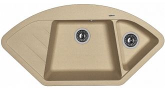 Угловая мойка классической формы с двумя чашами для кухни Florentina Веста изготовлена из композитного материала.