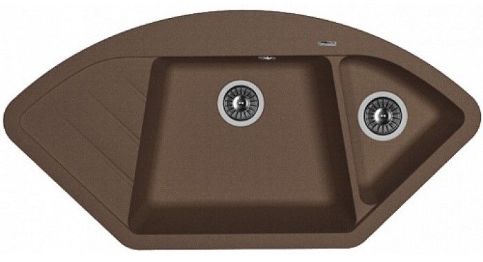 Угловая мойка классической формы с двумя чашами для кухни Florentina Веста изготовлена из композитного материала.