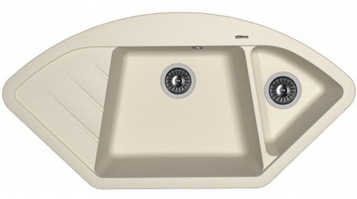 Угловая мойка классической формы с двумя чашами для кухни Florentina Веста изготовлена из композитного материала.