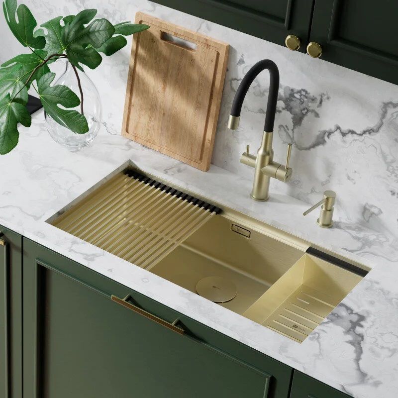 • Эстетичный внешний вид. Мойки выполнены в 4-х современных цветах: сталь, светлое золото, графит и черный матовый, что позволяет выбрать мойку, соответствующую стилю кухни.