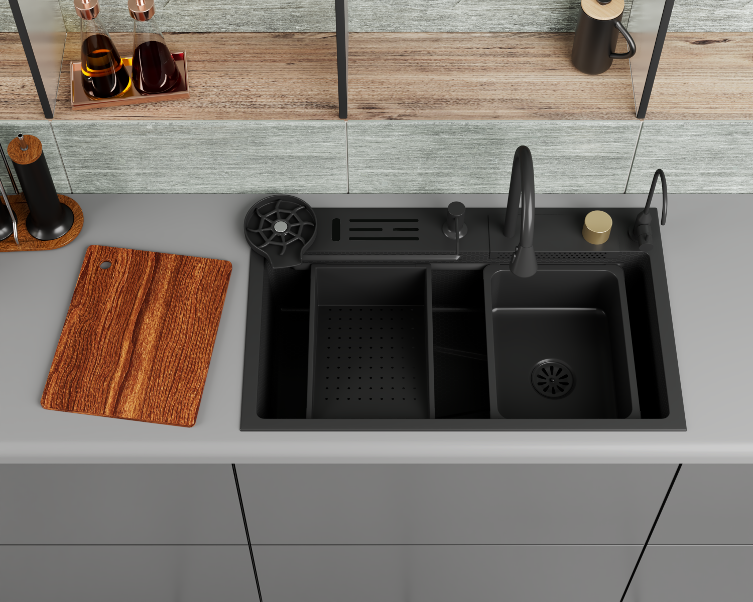 Кухонная мойка многофункц. DQ нерж.сталь темный графит в комплекте со смесителем и аксессуарами (DKS754605)