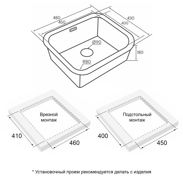 • Отверстия под смеситель: