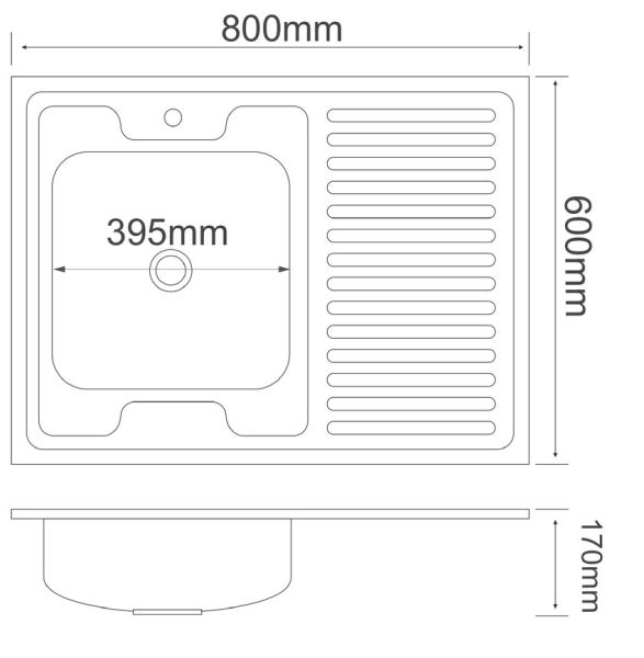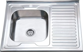 Кухонная мойка глянцевая левая, толщина 0,6мм, размер 800x600мм, глубина чаши 170мм, материал нержавейка, в комплекте евро сифон