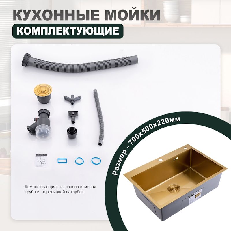 Кухонная мойка Splenka S703.7050.03, золотой сатин. Размер - 700*500*220мм. Кухонные мойки Spl... Подробнее