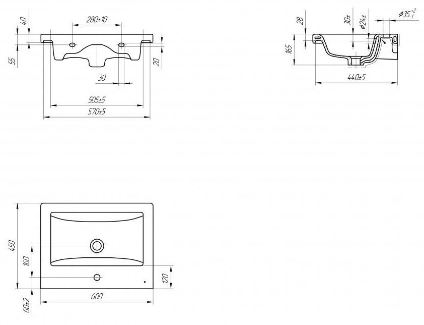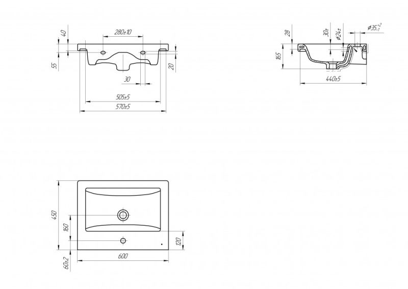 • Отверстия под смеситель: