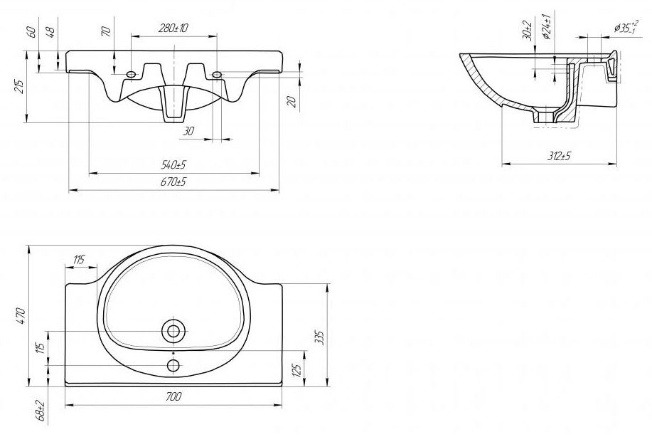 Универсальный дизайн раковины Cersanit ERICA 70 гармонично впишется в любой интерьер ванной комнаты.
