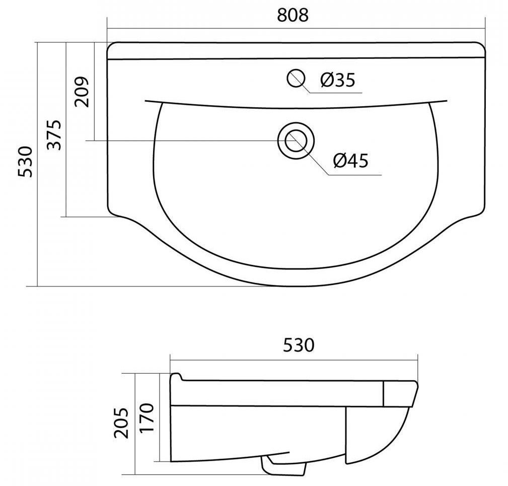 Керамическая раковина Santek ЭЛЬБРУС 80 отличается удобной округлой формой, высоким качеством исполнения, практичностью и функциональностью. Дополнительные бортики добавят место для размещения необходимых мелочей, а встраиваемая в мебельную тумбу конструкция создает дополнительное пространство для хранения.