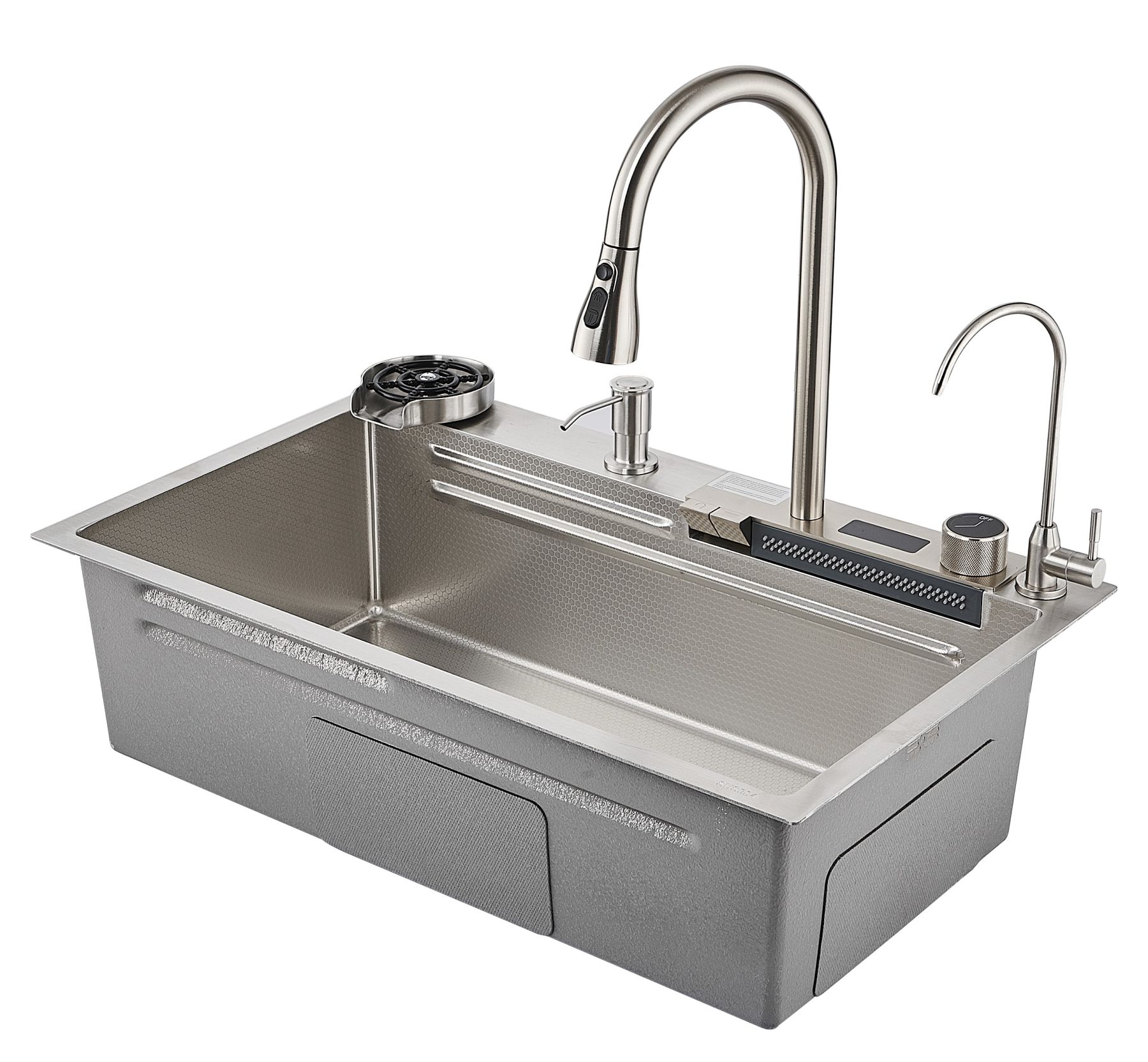 Многофункциональная кухонная мойка Savol S-SC002L с водопадом 75см сатин купить