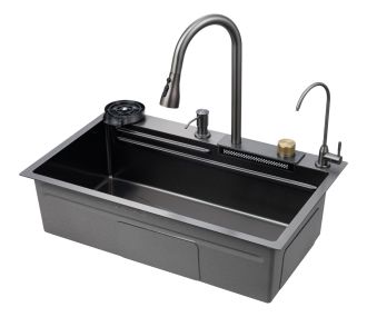 Многофункциональная кухонная мойка Savol S-SC003Q с водопадом 75см графит купить