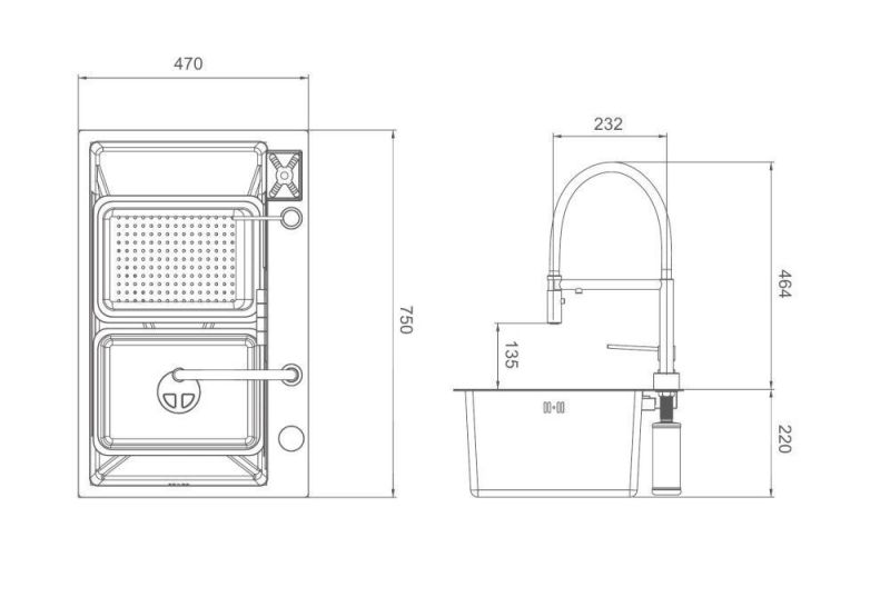Многофункциональная мойка для кухни Gappo GS7547-15 сатин