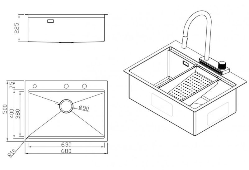Мойка для кухни Milacio Denia 68 Steel MC.77418 в комплекте со смесителем и коландером брашированное золото купить