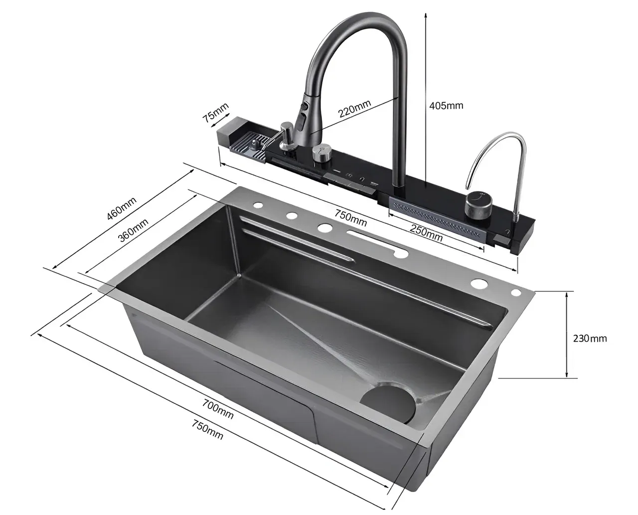 Коландер – для удобства разморозки продуктов, для промывки овощей и фруктов, мытья посуды с их дальнейшей сушкой при необходимости. Дополнительное удобство создает специальная «рельса» на мойке, по которой возможно перемещать коландер в выгодное положение (право/лево).