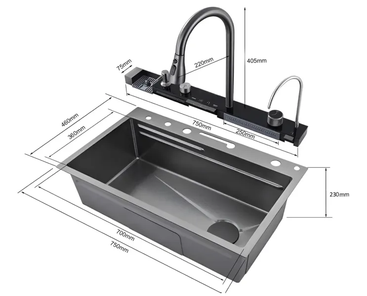 Клавишная панель переключения режимов – позволяет простым нажатием на клавишу выбрать нужный режим: каскадный водопад/ смеситель/ водопад/ мойка чашек.