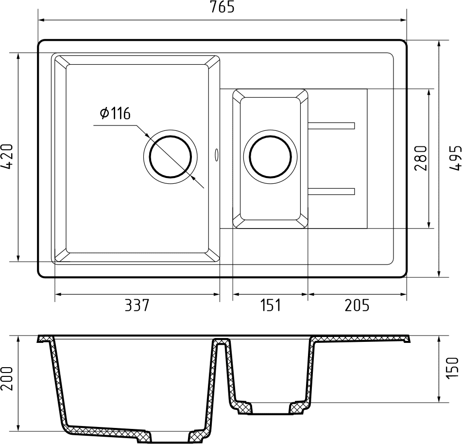 Мойка кухонная GranFest CLASSIC Q-775KL черный купить