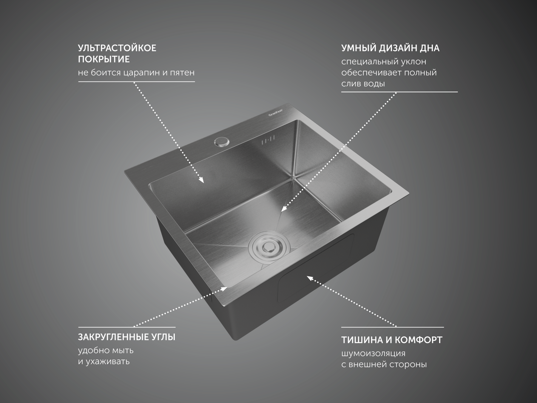 Мойка кухонная GranFest METAL 4844 нерж Нержавеющая сталь Подробнее